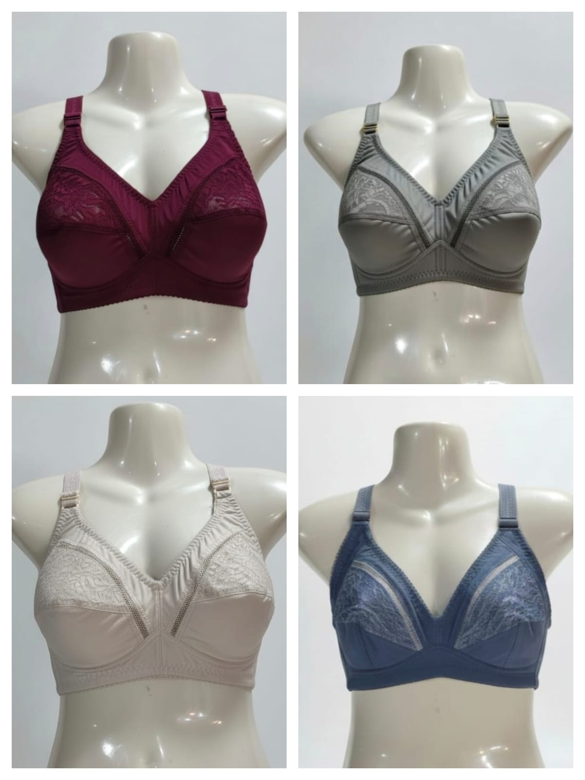 Cotton Pack of 4 Bras - Multi-Color Essential Set (Skin, Mehroon, Blue, Gray)